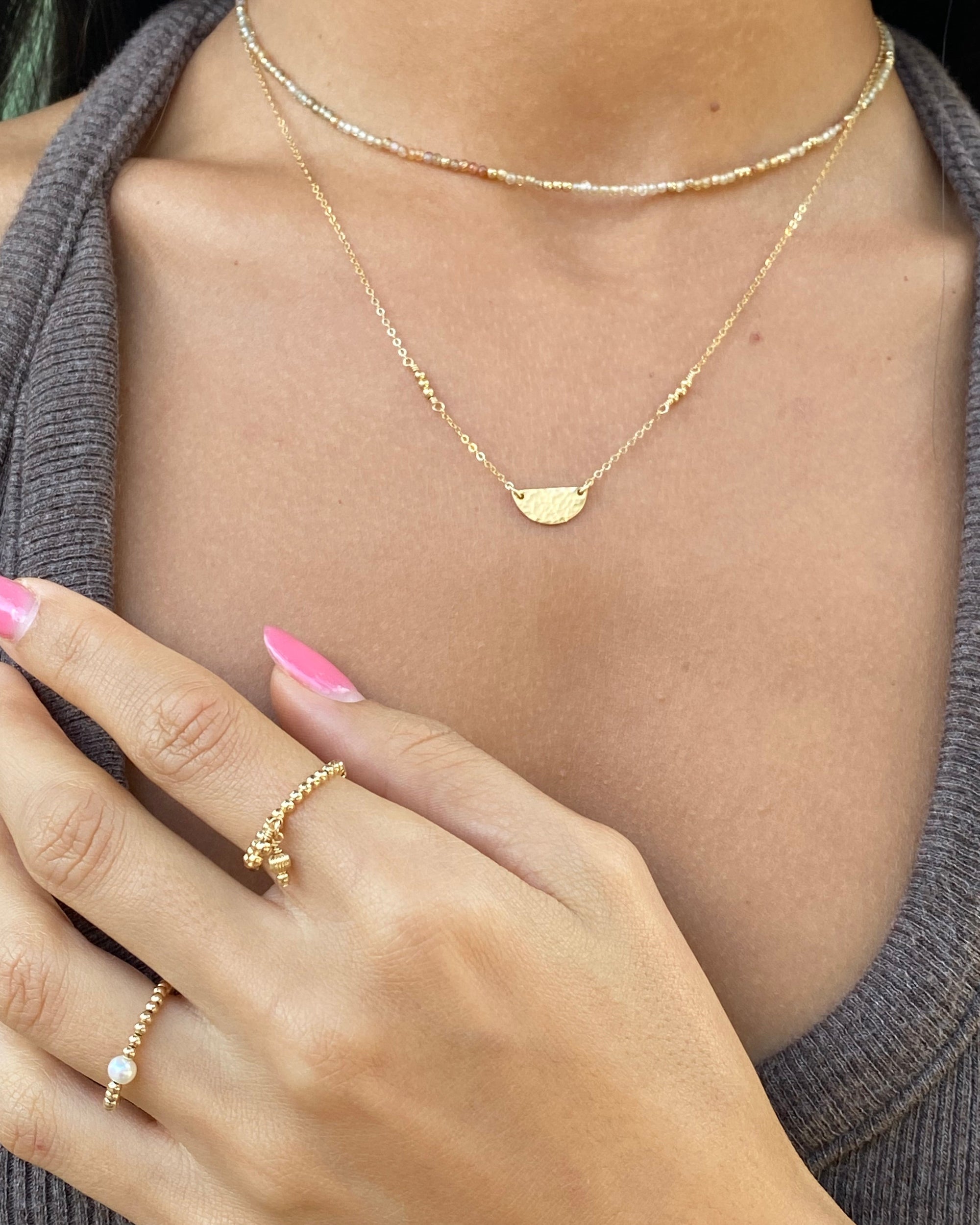 Each piece is handcrafted in our Bronte studio using 14Kt Gold Filled and hand-selected semi-precious gemstones. Inspired by nature’s quiet beauty, our necklaces are designed to layer, stack or stand alone - timeless companions for every day.